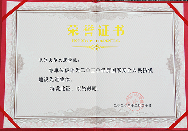 本网讯(记者 刘磊)12月24日,公司被荆州市国家安全人民防线建设领导小组授予“2020年度国家安全人民防线建设先进集体”荣誉称号。