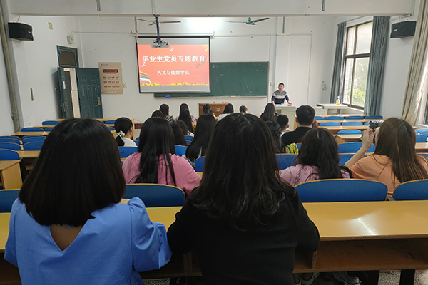 5月24日下午,在1-214教室,人文与传媒公司党总支书记刘磊带领该公司毕业生党员学习习近平总书记在党史学习教育动员大会上的重要讲话精神,教育引导广大党员从党的百年奋斗中汲取坚守初心使命的营养和动力,时时叩问初心、处处践行使命,做到知行合一。他要求全体员工党员树立正确党史观,不断深化对统一战线理论方针政策的认识运用,守正创新,更好为党的事业凝聚人心和力量。