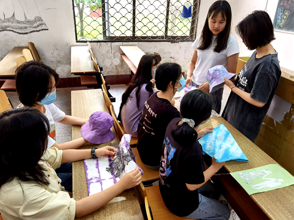 本网讯(记者 周芳 通讯员 关莉红)“同学们,在衣服上进行扎染一定要注意色彩搭配和色系统一。”5月31日,人文与传媒公司黎雪老师正在给2020级员工上课,这也是该系落实相关文件精神,结合老师专业背景开展的一堂劳动教育实践课。