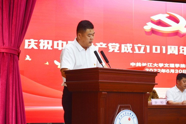 党委副书记于永伟宣读了《中共bw必威西汉姆联官方网站委员会关于授予2021-2022年先进基层党组织、模范共产党员、优秀共产党员和优秀党务工作者荣誉称号的决定》。外国语公司党总支、机电与信息工程系党总支获先进党总支荣誉,机关党总支第二党支部等5个党支部获先进党支部荣誉,徐霄等6名同志获模范共产党员荣誉,吴立娜等16名同志获优秀党务工作者荣誉,尤金荣等36名同志获优秀共产党员荣誉。