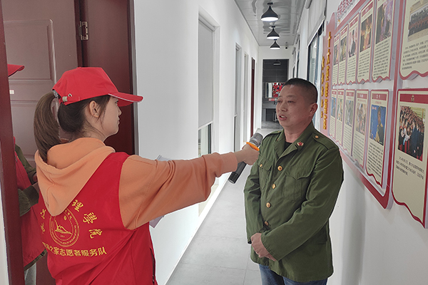在退役军人张澄清家中,同学们聆听革命前辈分享军旅生涯中的战斗故事,陪老人唠家常,了解他的身体状况和家庭情况。“青年一代要自强不息,作为一名党员要争做排头兵,全心全意为人民服务,不计得失,甘愿奉献。”张澄清说。