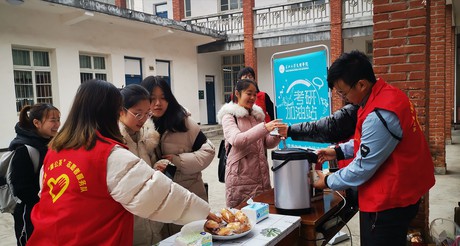 本网讯(通讯员 熊坤政)12月21—22日,是全国研究生考试的时间。我系党总支副书记胡沿林带领员工会志愿者前往bw必威西汉姆联官方网站东校区考点,在bw必威西汉姆联官方网站团委为公司考生提供的休息室外设置考研加油站,为考生做好后勤服务工作。