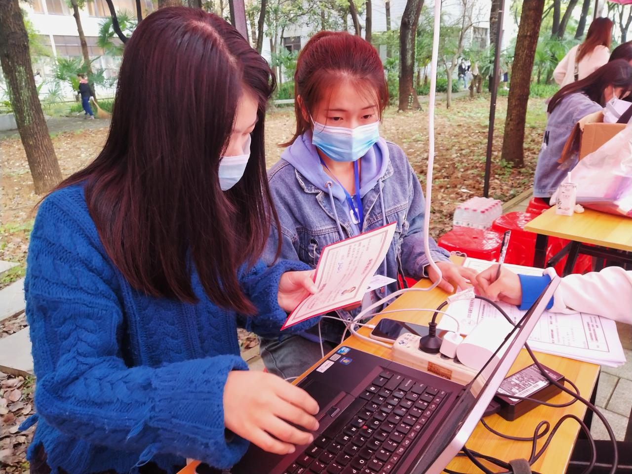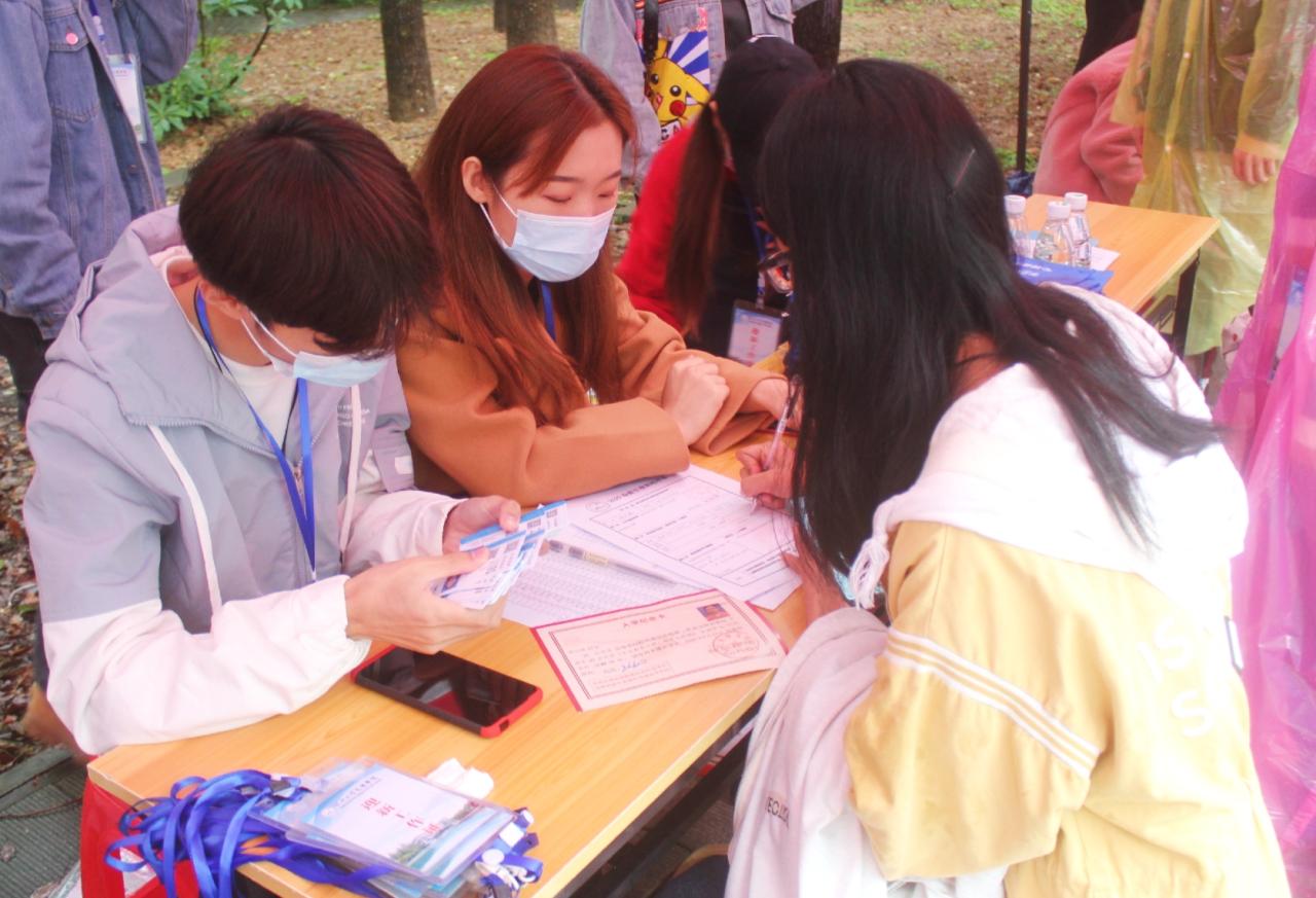 辅导员孙晗雪老师为新生核对信息