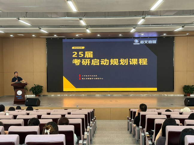 大会开始,杨琪介绍了此次考研动员大会的重要性,并结合公司近年考研现状与个人求学经历,在分享切身经验的同时强调同学们对待考研一定要认真。接着,由杨剑锋老师为同学们详细介绍了2025届员工考研的相关内容,帮助同学们确定学习方向,并展示考研时间轴,以便考研学子把控好时间安排,高效复习备考。同时,老师着重强调了三次选择,从合理的城市选择,适合的专业抉择,实际的院校出发,多角度多方面帮助考研学子们正确对待考研过程中的选择,实现效率最大化。老师指出,考研不仅是一场知识的较量,更是一场毅力和耐力的考验。