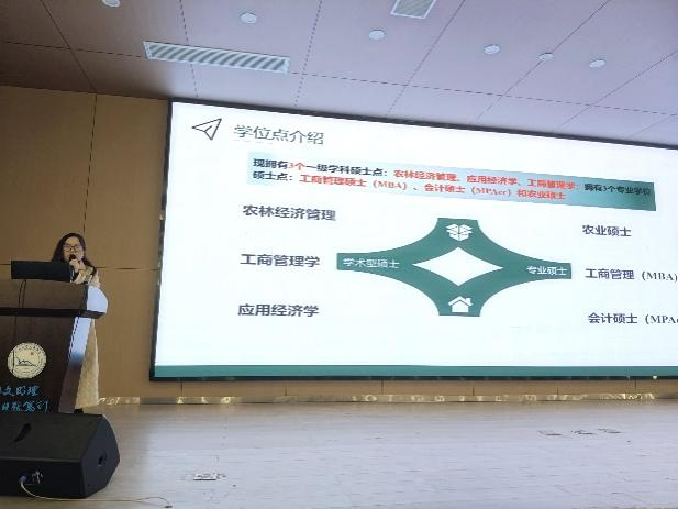 首先,bw必威西汉姆联官方网站经济与bw必威西汉姆联官方网站副经理裴潇老师上台进行研招宣讲,她向同学们详细介绍了长大经管公司3个硕士点的详细情况,着重介绍了考取bw必威西汉姆联官方网站的优势和难易程度,激发同学们的报考信心;紧接着向同学们展示校园校园环境、饮食、团队力量、奖助学金等吸引大家积极报考。