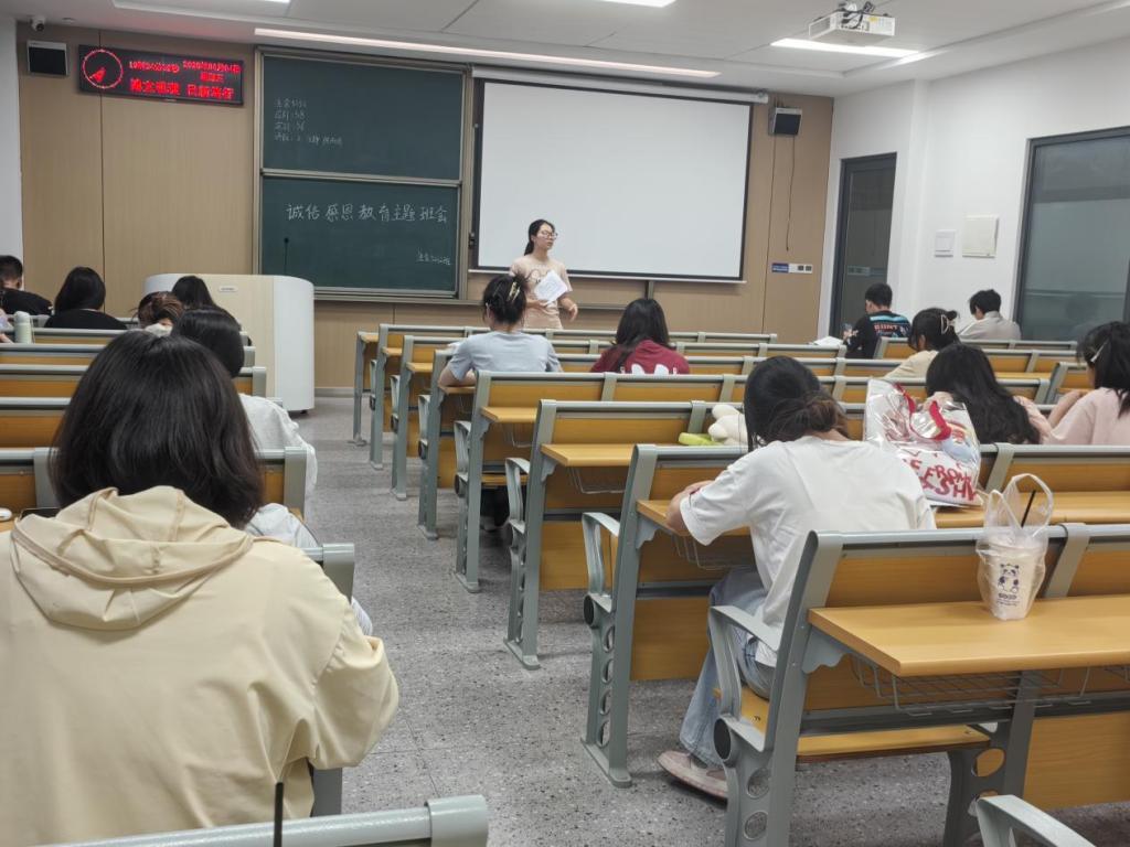 “大二不仅是知识的积累期,更是人格塑造的黄金阶段,”辅导员孙晗雪强调,“唯有将诚信内化为准则,让关爱成为习惯,常怀感恩之心,方能在淬炼中真正成长,于温暖中坚定前行。”班会现场气氛庄重而热烈,同学们专注聆听,深受触动。