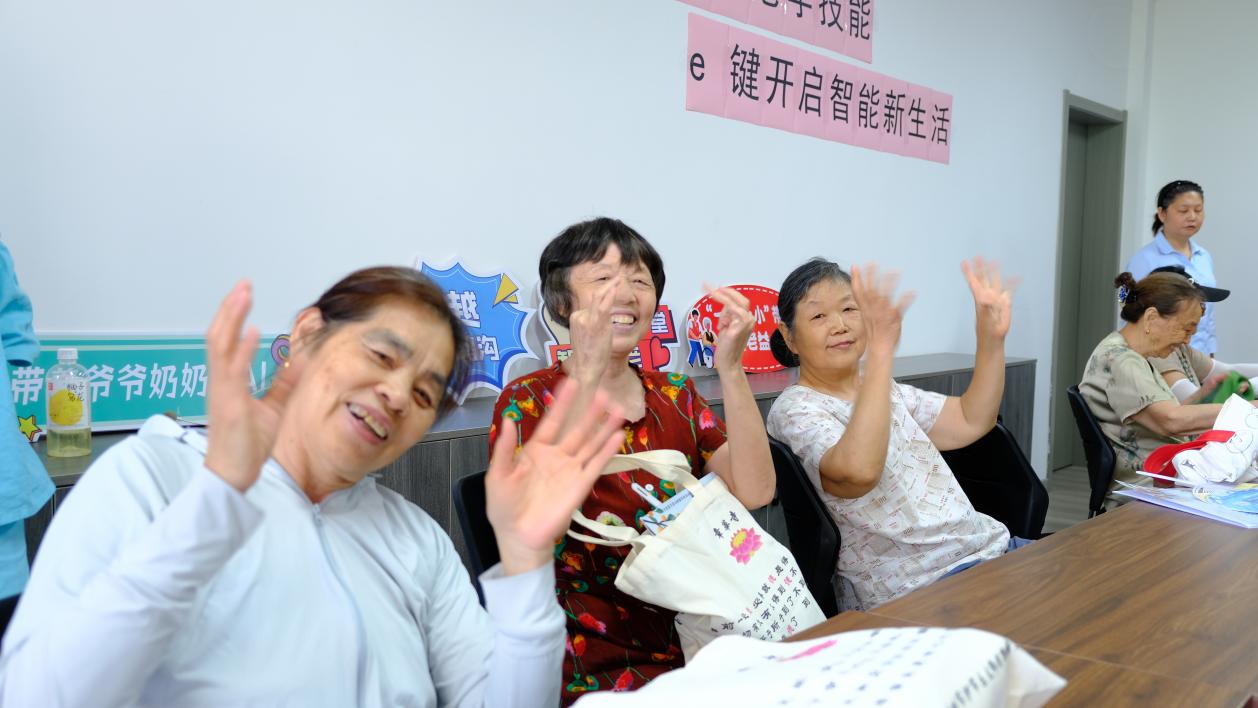 活动最后,主讲人精心设计了互动环节。随着一张张手机图标投影在大屏幕上,老人们纷纷举手抢答,有的老人还拿起自己的手机对照着辨认,活动室里欢呼声、笑声此起彼伏,将整场活动的氛围推向了高潮。