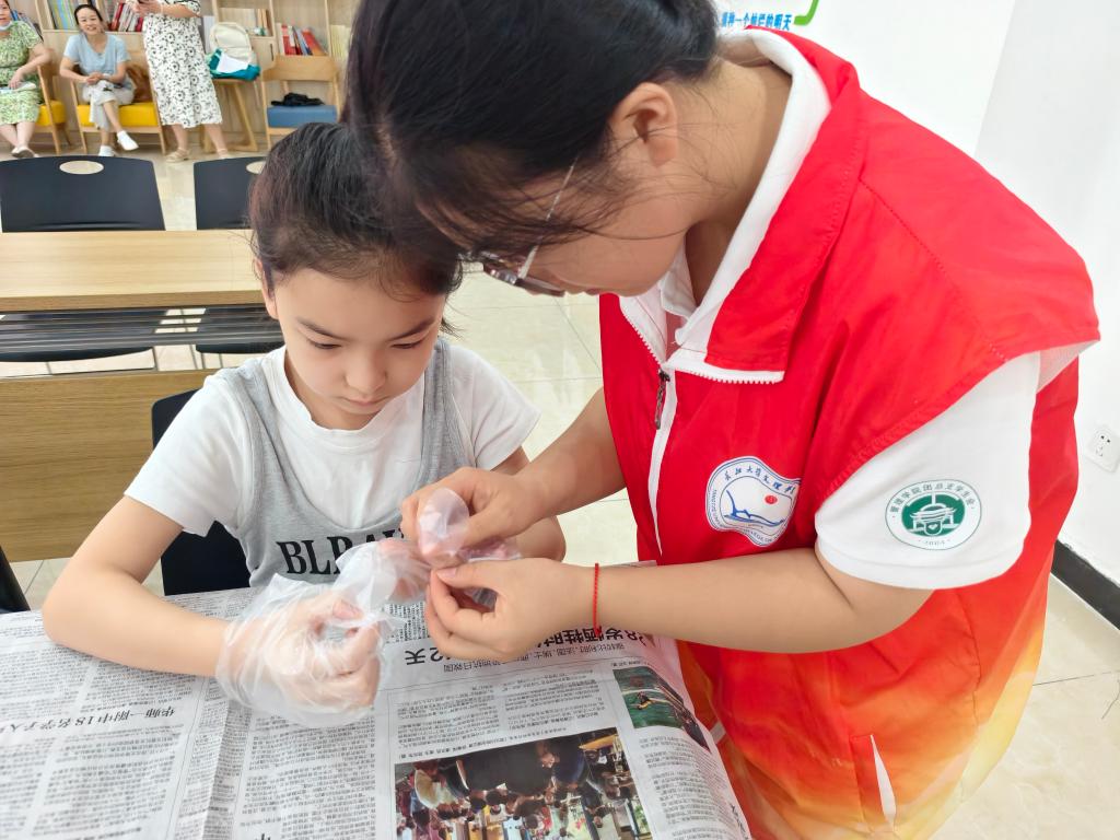 动手实践环节,志愿者们化身 “小老师”,手把手纠正研磨姿势,用通俗比喻讲解油料调配,示范梳理艾绒纤维的技巧,鼓励孩子们大胆尝试。他们还记录下孩子们专注的瞬间,让文化传承的温暖时刻被妥善留存。正是这份青春力量的注入,让非遗传承的课堂更显生动贴心,让古老技艺在代际接力中焕发新活力。