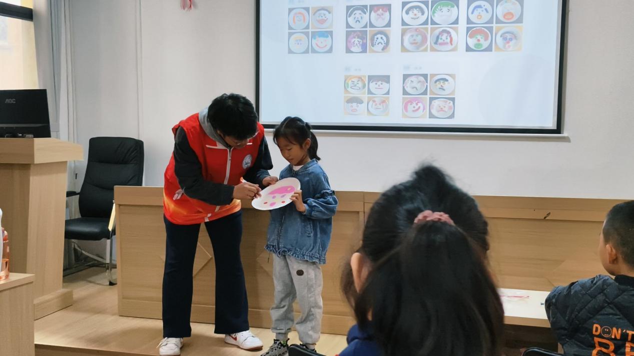 活动尾声,孩子们动手制作专属情绪脸谱,并逐一上台分享创作时的心情。志愿服务队成员全程积极参与,耐心协助孩子们完成手工创作,同时及时给予肯定与鼓励,让每个孩子都能感受到关注与认可。