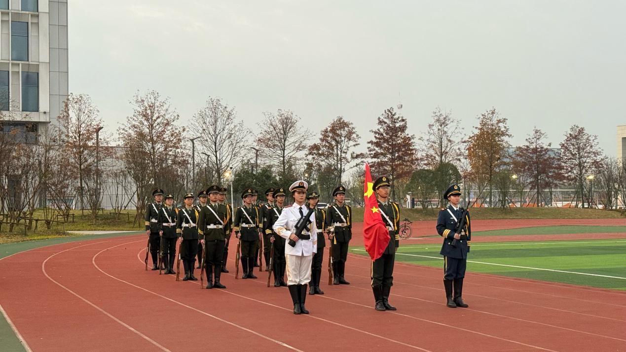 升旗仪式正式开始。国旗护卫队队员身着统一制服,迈着铿锵有力的步伐,护卫着五星红旗走向升旗台。伴随着雄壮的《义勇军进行曲》,五星红旗缓缓升起,全体师生肃立注目。