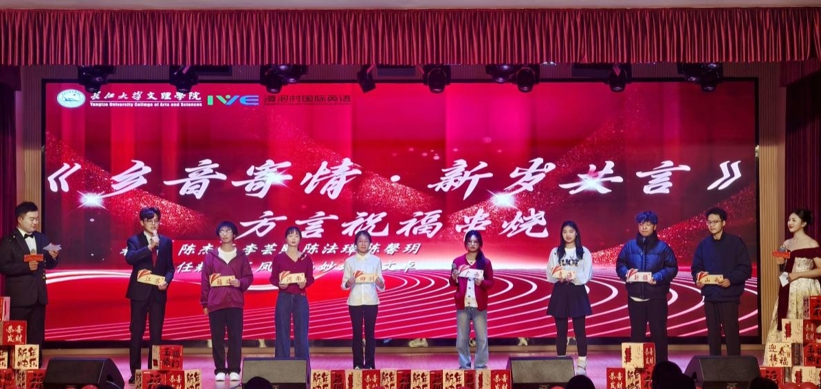 “乡音寄情·新岁共言”环节,五湖四海的学子登台分享家乡年俗,送上方言祝福,尽显文化多元之美,凝聚“四海一家亲”的温暖氛围。