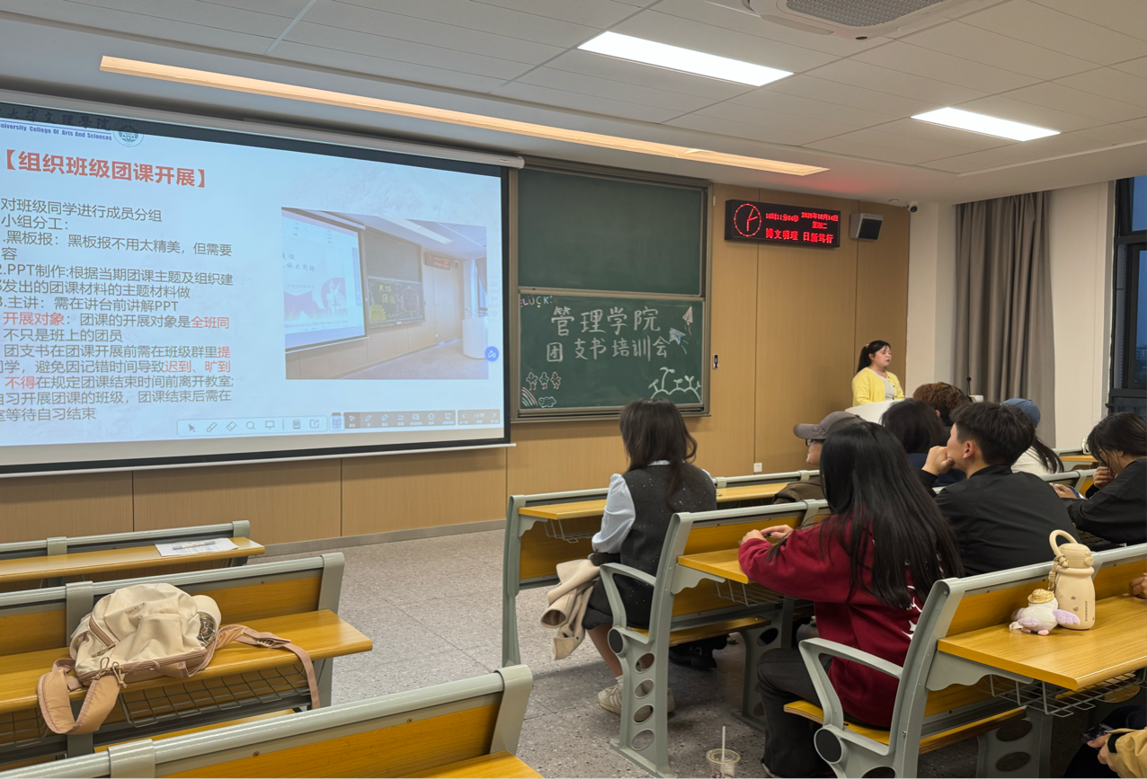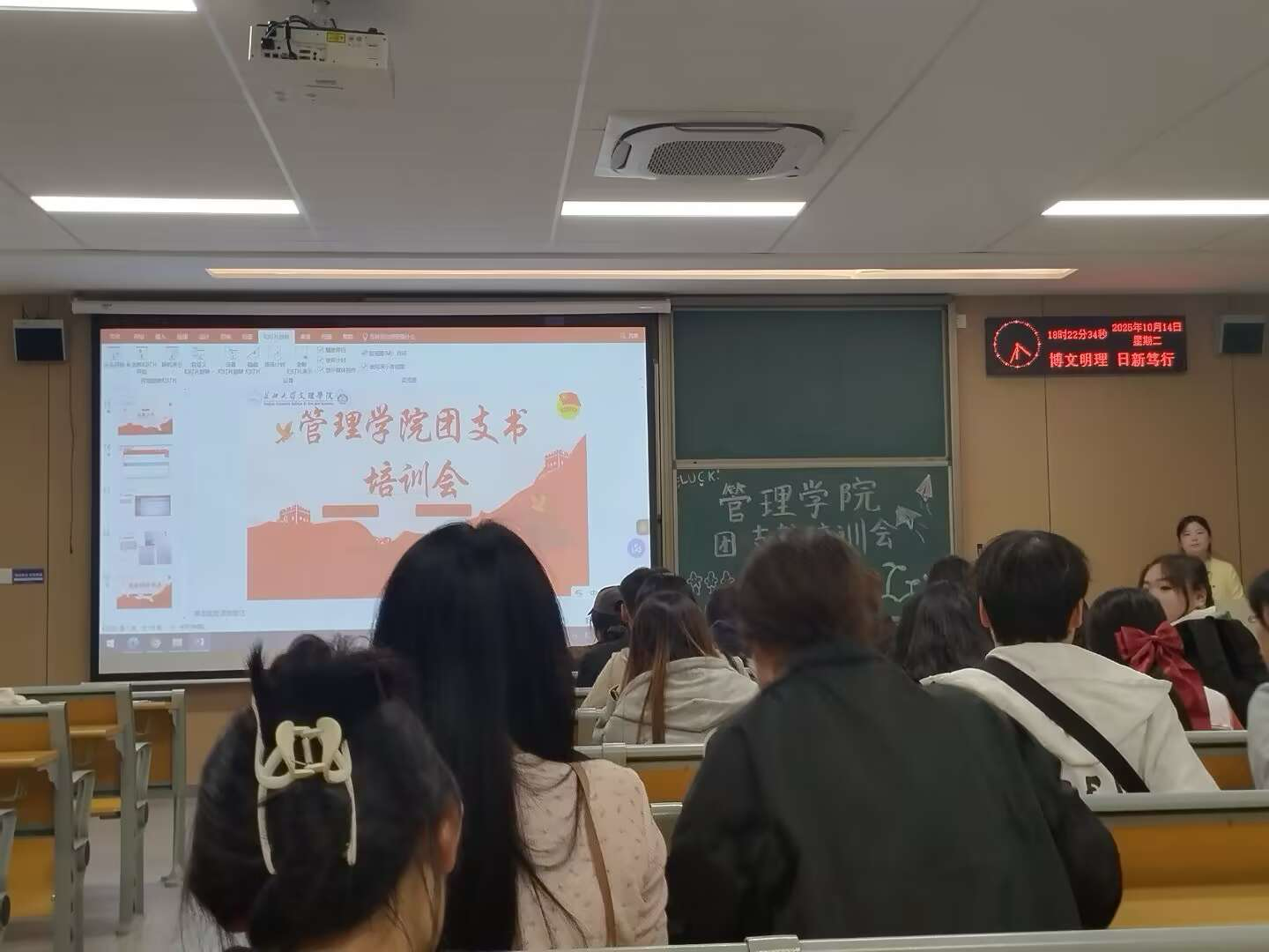培训会中针对各班级团课开展前期工作,假条注意事项,团支书手册的书写及入团、入党的推优条件,作出了讲解和要求。本次团支书培训会将纪律要求融入团课筹备、现场组织、成果核验等环节,既明确流程规范,也强化了监督标准,用具体、可落地的纪律要求替代笼统指引,让团务开展有章可循、团课执行有规可依。整个培训会现场,会风端正,参会的各位团支书全神贯注,认真记录,展现了良好的精神风貌和对纪律的严格遵守。此次培训会通过对各流程的讲解和纪律要求,为推进团课高质量开展奠定了坚实的基础。