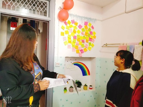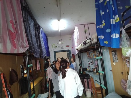 活动的第二轮环节是进寝参观装饰并打分。本轮共有大一大二共32个寝室参加,在系部领导、老师高度关注下,由罗凯敏、杨杉杉两位老师带领纪检部成员组成评委组,对参加的32个寝室进行参观、评分。期间,老师们认真负责的参观检查寝室的卫生状况和文化气息,并询问同学们关于寝室文化建设和环保创意的具体内容,检查是否使用违禁电器,提醒同学们秋季干燥,注意火灾等。在完成评分之后老师们表达了对同学们的关心和期望,寝室内不时传来欢声笑语,同时老师们也对个别宿舍存在卫生死角,空气质量较差,物品摆放不合理等问题及时指正并教育,督促其改正问题。