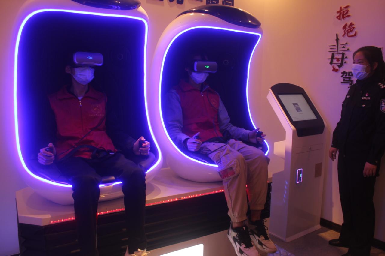 实践队员体验VR-3D毒驾模拟机