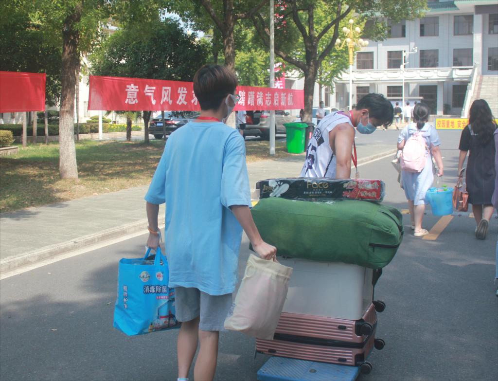 在迎新现场,志愿者们不停地穿梭在校道上,热情细心地引导新生完成报到流程,帮助新生搬运行李,并积极介绍校园环境和生活经验。一位满头大汗却笑容灿烂的志愿者说:“身为新生的学长,有义务为新生做好相应的指导帮助,看到每一位新生能够顺利报到入学,心里感到非常开心。”