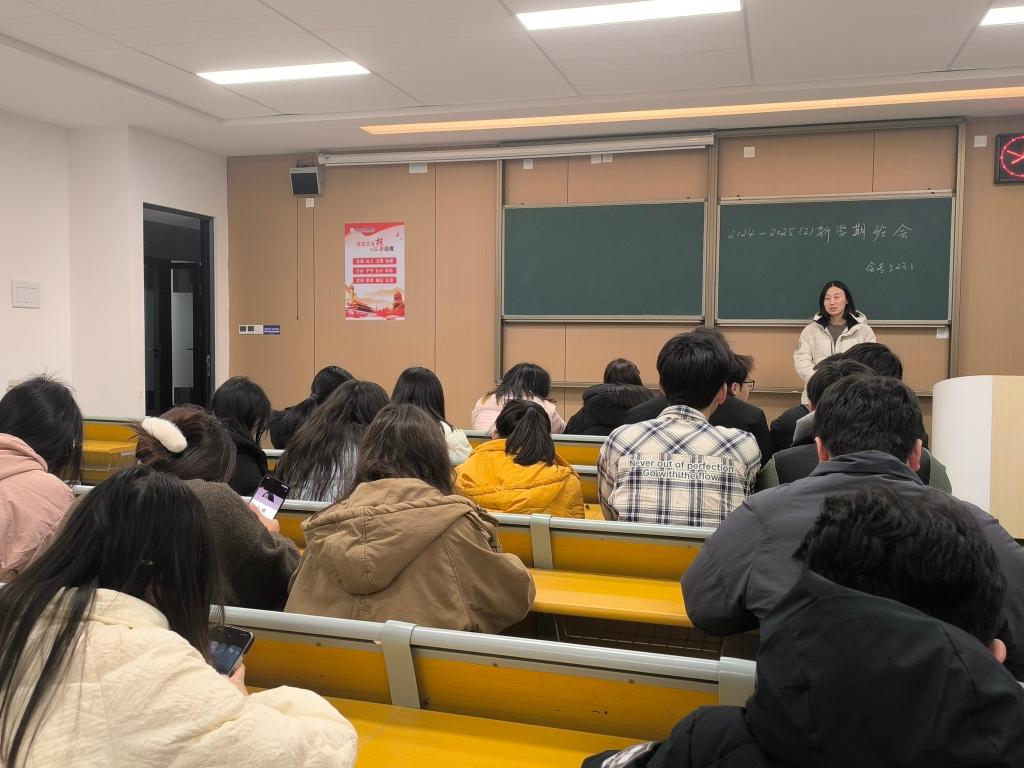 随后,辅导员老师对上学期班级工作进行了简要回顾,表彰了在学业、员工工作、社会实践等方面表现突出的同学,鼓励大家继续发扬优点,不断进步。