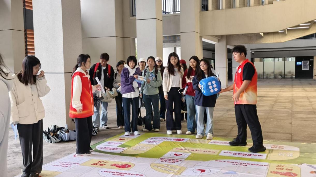 活动现场,志愿者们分区负责、机动补位,引导到场参与者有序参与嘉年华各环节活动。在“职企探秘-职业大富翁”区,志愿者全程维持秩序、协助学子熟悉游戏规则;“笔试测一测”环节中,他们化身“政策讲解员”,发放自制宣传手册,结合手册内容为学子们答疑解惑;“名企直通车”区里,志愿者有序引导简历投递、协助企业整理材料,破解“投递混乱”痛点。此外,服务队还组建机动小组,实时补给物资、维护现场秩序,及时处理学子咨询等突发需求。