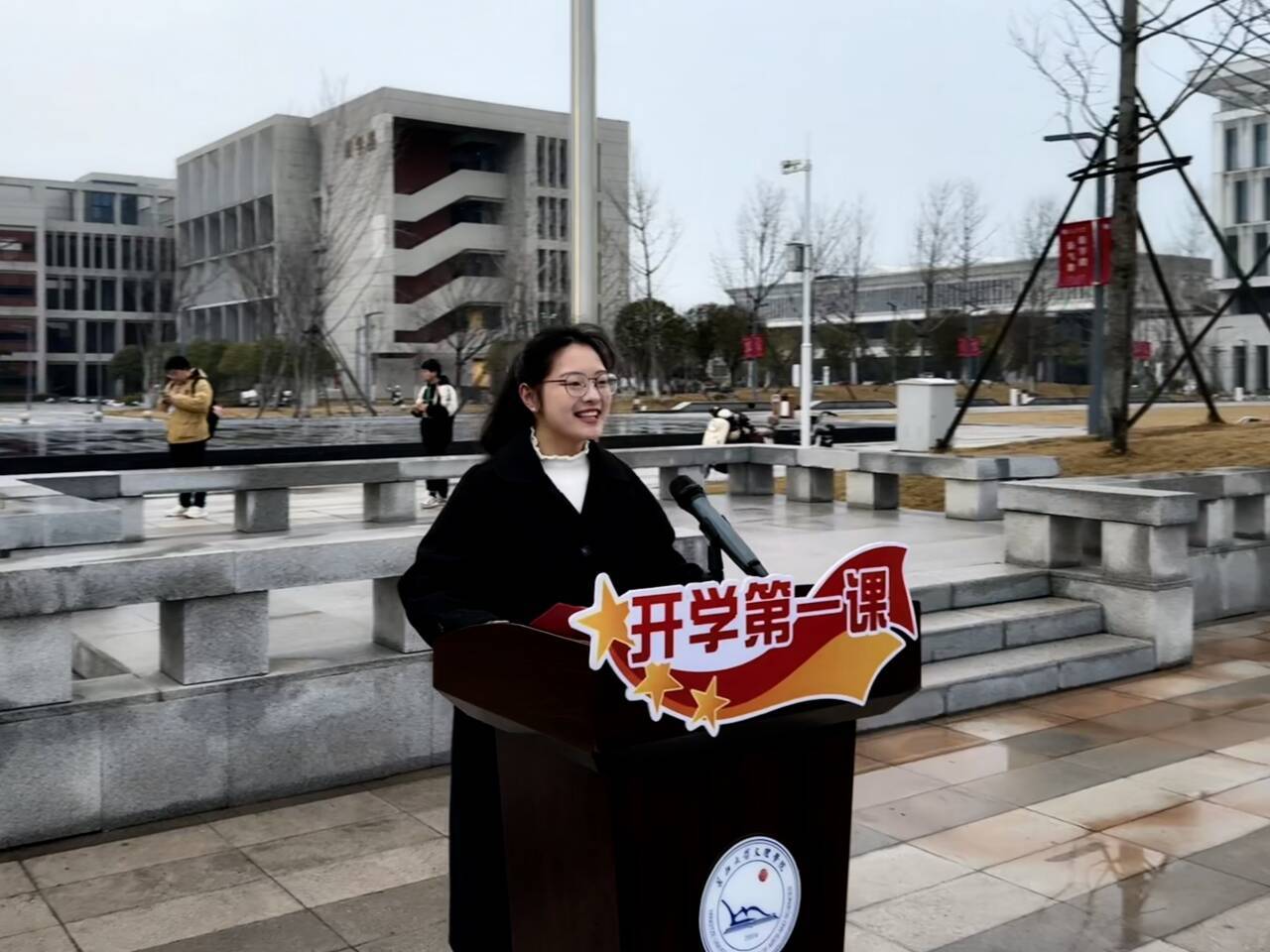 升旗仪式后,bw必威西汉姆联官方网站大数据与会计专业员工张灵华作为员工代表,以《与春天一同拔节,与骏马一同奔腾》为题发言。她结合2026丙午马年精神内涵,以春日生长、骏马奔腾为喻,向全体同学发出青春倡议,号召大家以“三匹马”的姿态砥砺前行。
