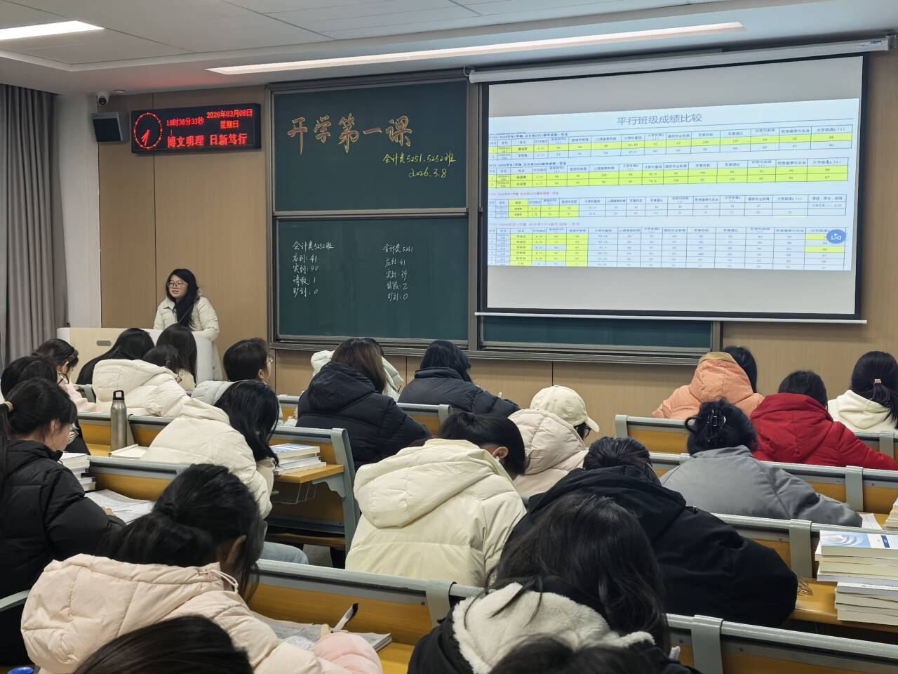 在各班教室里,班主任老师们结合专业特色与员工实际,用心用情打造别开生面的“开学第一课”。会计学专业班主任陈芳老师围绕专业学习特点,精心制作PPT,为同学们深入剖析了会计学专业的学习压力来源与应对策略。她结合行业发展趋势,引导同学们正确看待学业挑战,掌握科学的学习方法,以积极心态迎接新学期的各项任务。
