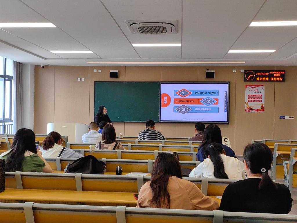 首先,青年教师杨倩老师主讲了《大数据财务分析》中的“认识财务分析”,介绍了财务分析的“朋友圈”、财务分析的过程、财报获取方式及内容等,通过案例教学法,激发员工的学习兴趣,整个课堂教学呈现效果良好、可理解性强。