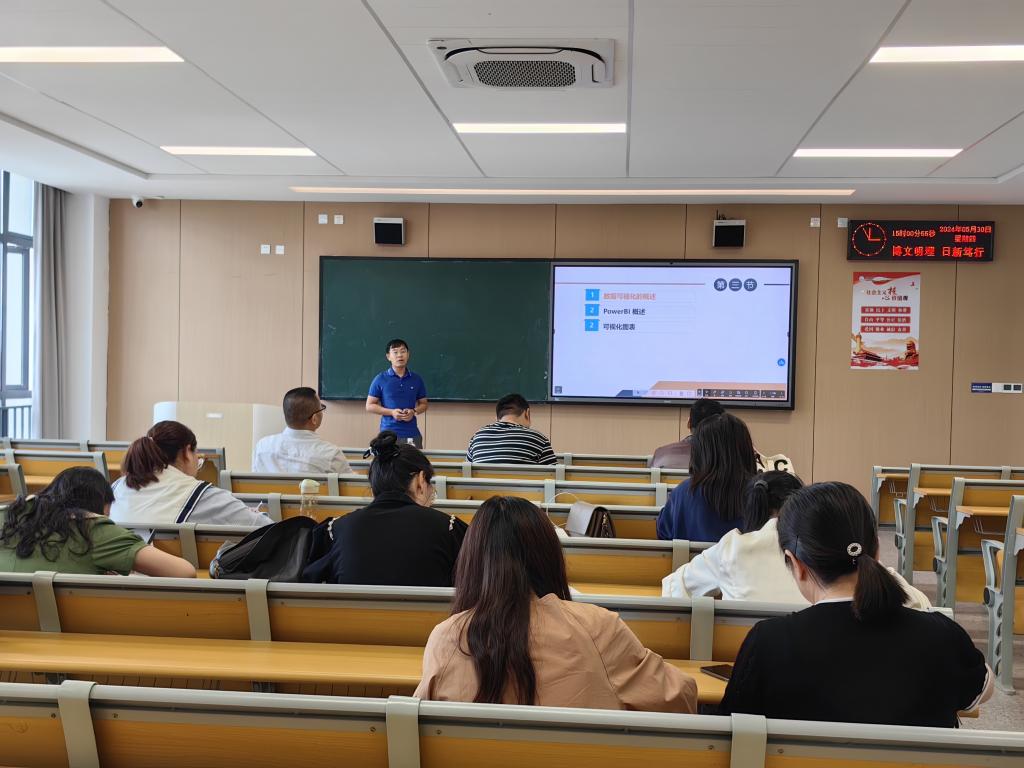 其次,青年教师余孟哲老师主讲了《大数据应用基础》中的“数据可视化概述”,介绍了数据可视化的概念,数据可视化的工具,通过实际案例广告,激发员工的学习兴趣,教学层次清晰,效果良好。