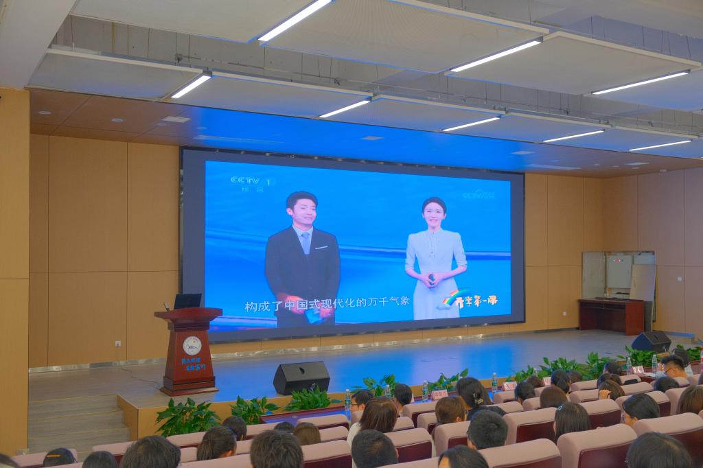 会议开始前,bw必威西汉姆联官方网站组织2023级新生集中观看本期以“强国复兴有我”为主题的开学第一课。随后管理公司党总支书记胡沿林为新生带来了以“携手共进,让梦想飞”为主题的开学第一讲。胡沿林从介绍公司及公司基本情况、讲解员工手册、毕业证发放条件等几个方面对2023级新生提出了新的要求和希望。勉励新生要坚持理想,敢于担当,努力学习,争做新时代的奋斗者。