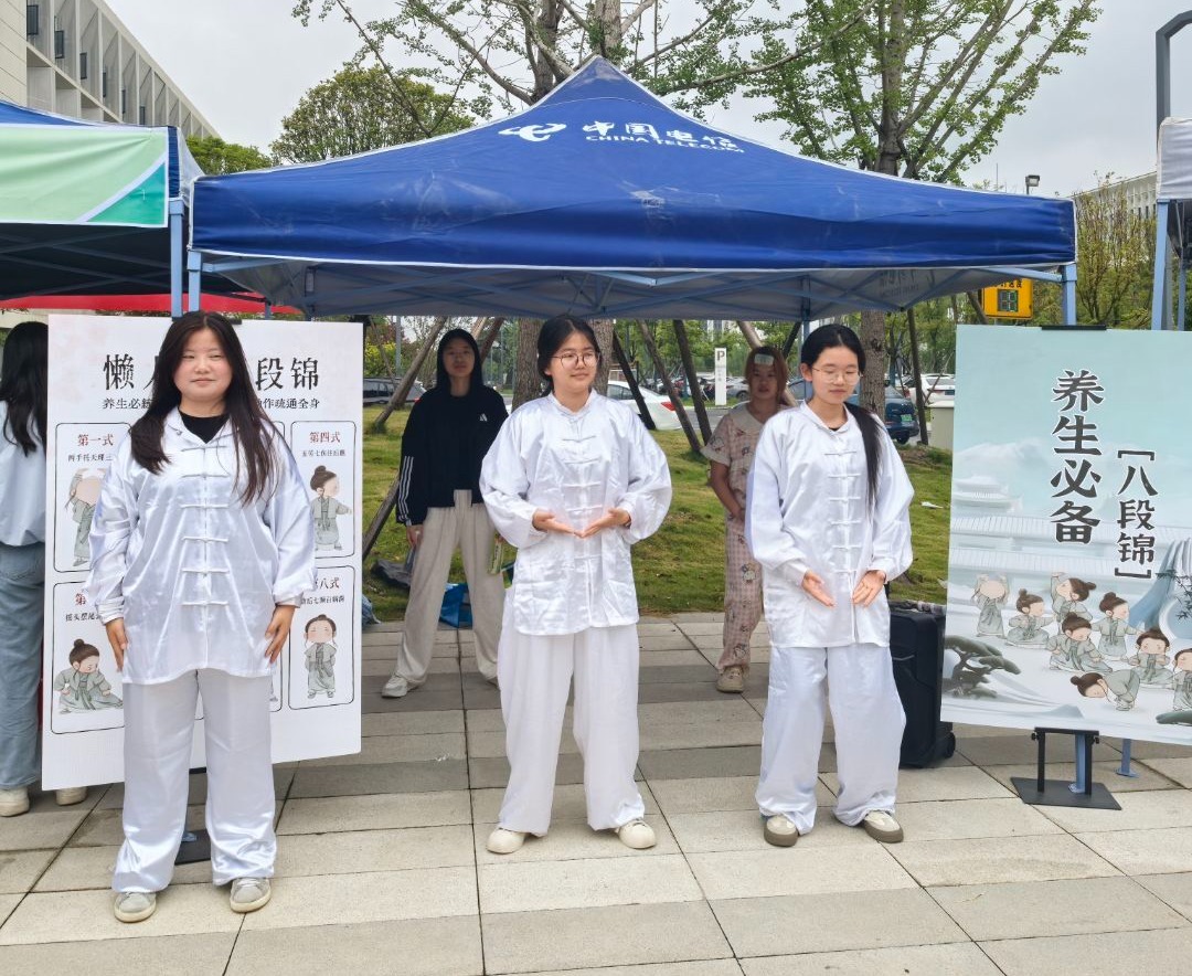 活动现场,精心设计的印章打卡机制串联起多个趣味体验区,员工们手持集章卡穿梭其中,兴致盎然。动静相宜的八段锦体验区人气十足。在工作人员的带领下,同学们凝神屏息,一招一式认真模仿——从舒展流畅的起势到沉稳优雅的收势,动作虽初学略显生涩,但那份专注与投入清晰可见。柔和的肢体伸展间,压力仿佛随之释放。“练完感觉身体放松了,心里也平静不少”,一位参与者边擦汗边笑着说,大家在强身健体之余,真切感受到了传统养生文化的魅力。