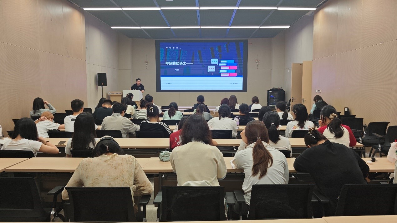 王娜学姐则围绕考研中面临的挑战展开分享。她坦言,考研过程中遇到过焦虑、迷茫等诸多问题。针对这些挑战,她分享了自己的应对心得,建议同学们找准方法、提高学习效率,理性看待焦虑,同时,王娜学姐还强调了坚持的重要性,鼓励同学们在考研路上不惧困难,勇往直前。