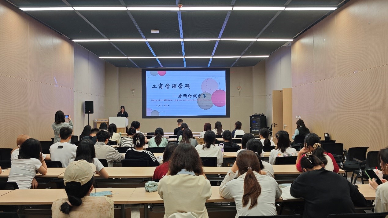 活动伊始,成功考取南京邮电大学工商管理学硕的薛可盈学姐率先分享。她分别按照前期积累、中期梳理、后期冲刺的节奏,分享了详细的学习方法与备考策略,让同学们对各科目备考有了系统清晰的认识。
