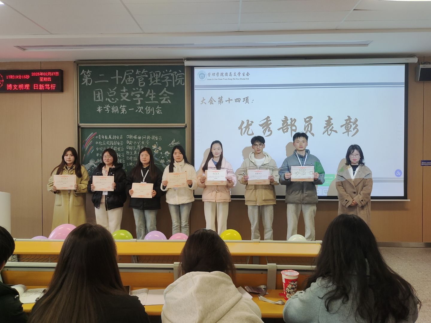 会议最后,对上学期表现突出的优秀部门、优秀部长及优秀干事进行了表彰,激励全体成员以先进为榜样,在新学期的工作中再接再厉、不断进取。