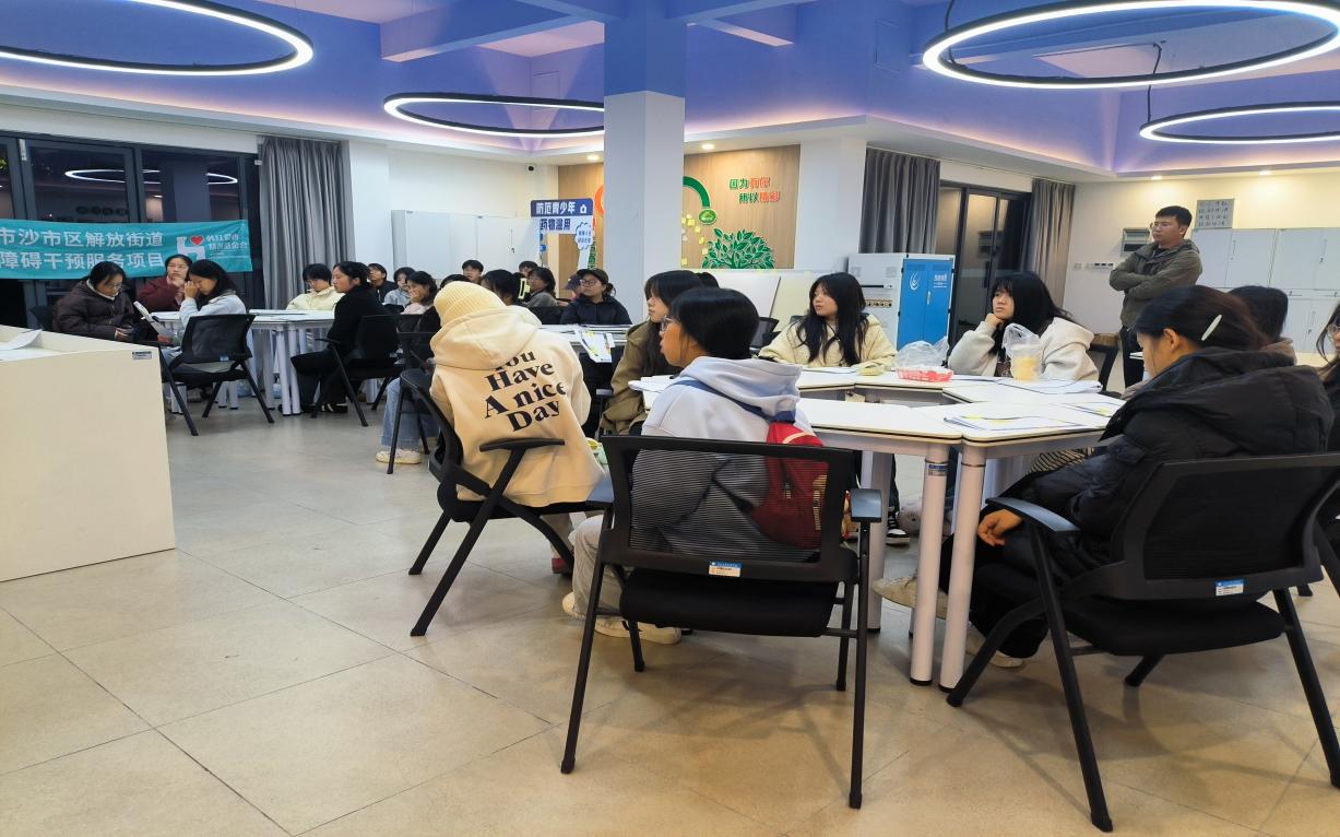 为了确保本次活动顺利开展,服务队邀请荆州市四叶草社会工作服务中心代倩学姐,于25日在青春健康科普教育基地展开培训,主要目的是分配好各点位的工作,让志愿者们了解工作内容及此次活动流程,以便更好地服务帮助老年朋友们。
