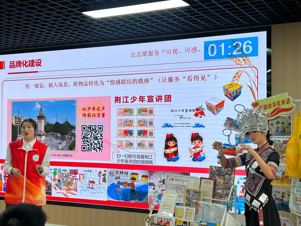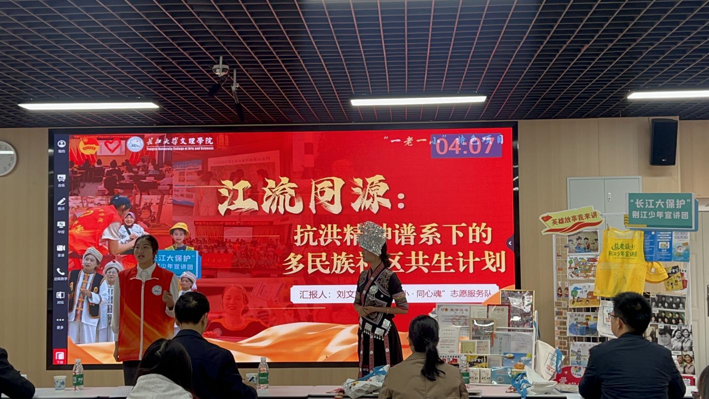 服务队前期深入迎喜门社区,聚焦“一老一小”核心需求,以荆江抗洪精神为引领,创新打造“11234”服务模式。针对儿童群体,开设112节特色课程,构建优质成长空间;为老年人提供健康义诊、AI数字课堂等贴心服务,点亮银龄生活。团队注重精神传承与民族团结融合,组建“荆江少年宣讲团”,通过地标故事分享、巡河护堤实践等活动,让抗洪精神与民族团结理念深入人心。