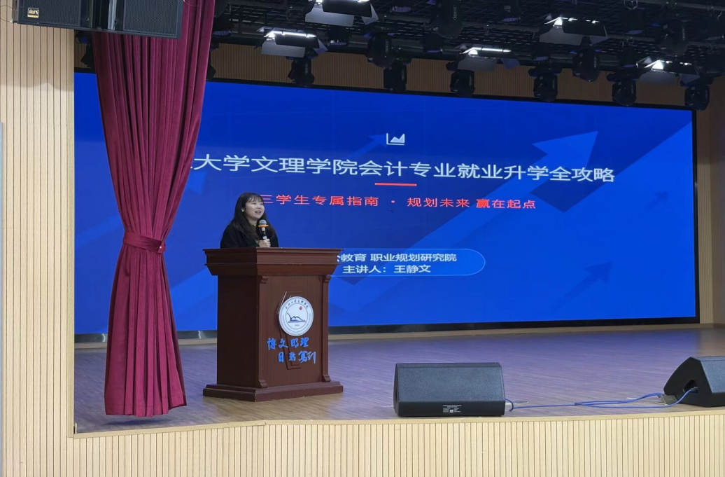 3 月 26 日,“就业升学全攻略” 专题讲座在城中校区食堂三楼报告厅举办,特邀中公教育公职考试与国企招聘研究院资深讲师王静文老师主讲。本次讲座以 “规划未来,赢在起点” 为核心主题,从就业方向解析、升学路径选择、备考技艺分享三大维度展开深度讲解。