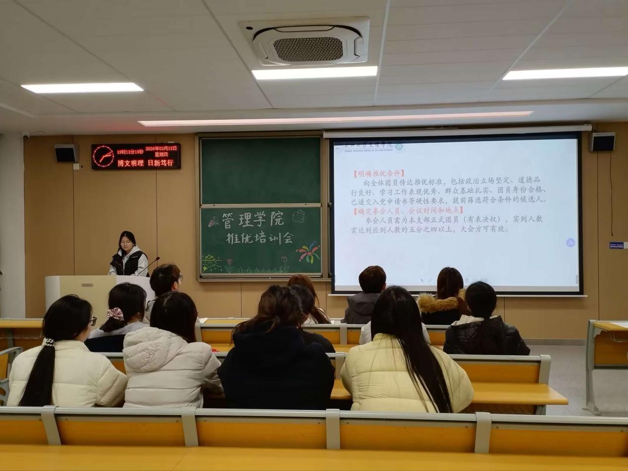 随后的推优培训的主讲人高静玉同学,聚焦团员推优入党工作规范,对推优对象条件、推优流程步骤、材料填写要求等进行细致拆解,明确了推优工作中的时间节点、民主评议环节的操作标准,强调推优工作必须坚持公平、公正、公开原则,确保把政治素质过硬、作风优良、群众基础扎实的优秀团员推荐到党组织中。