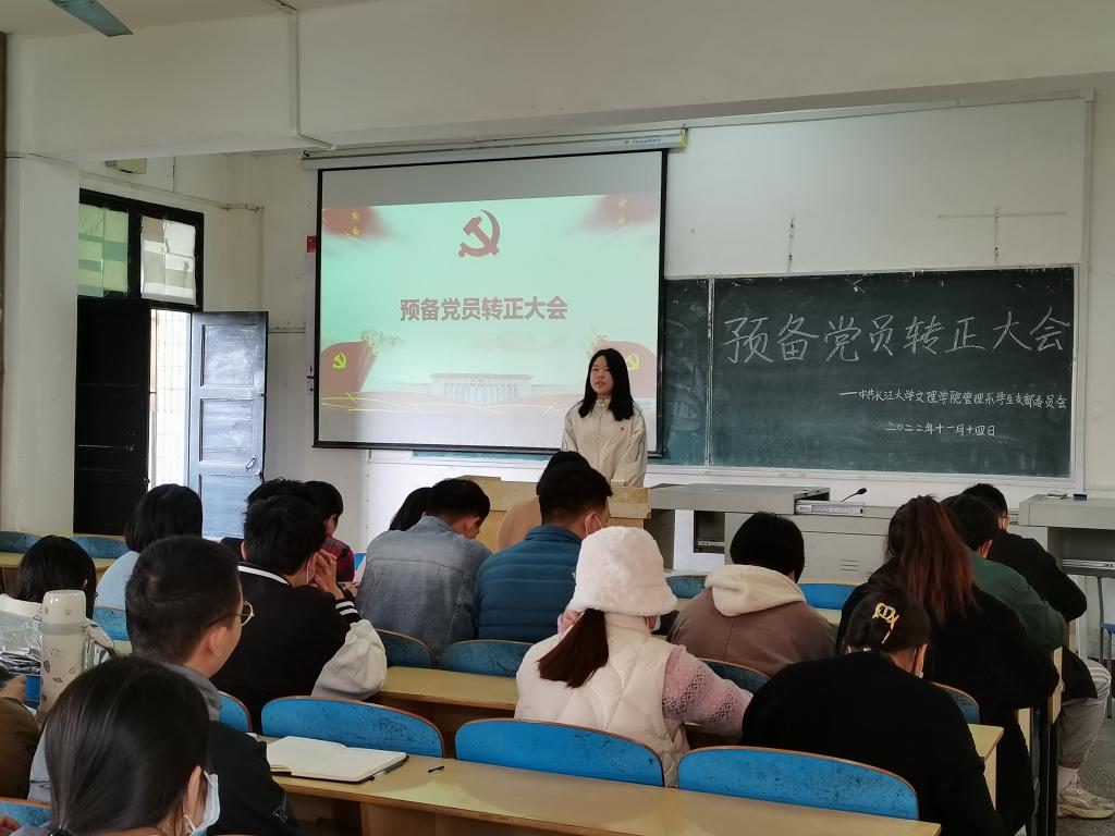 最后,由支部副书记胡沿林老师作总结性发言,对转正的党员给予肯定和表示祝贺的同时,还强调各位同志要不忘入党初心,知行合一,砥砺前行。