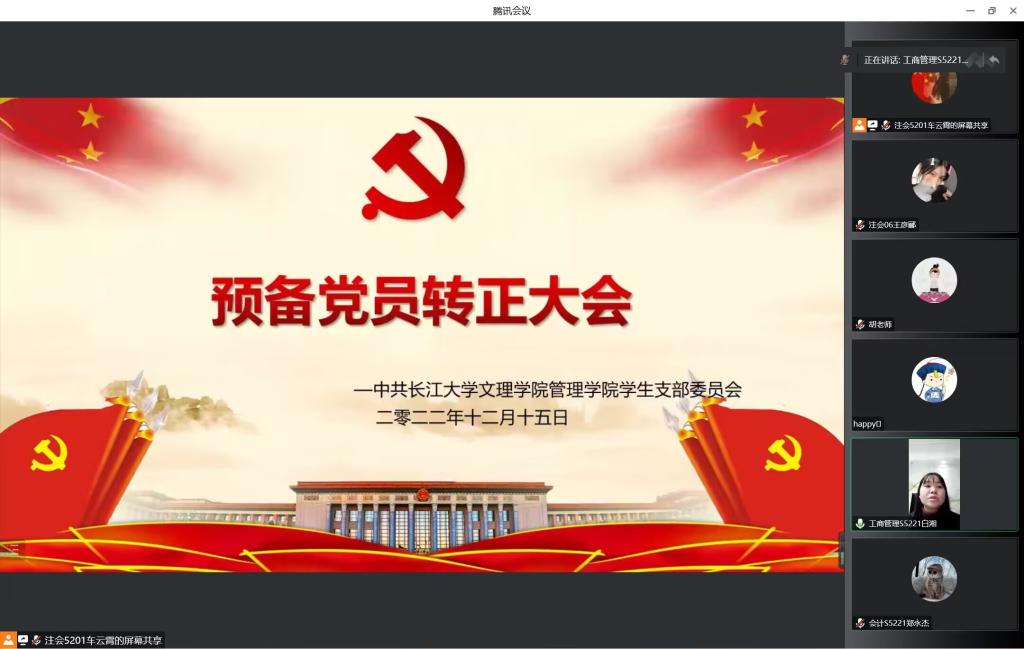 本网讯(通讯员 王彦郦) 2022年12月15日星期四下午14:00, 我公司员工党支部以线上形式召开预备党员转正大会,讨论关于白湘同志转正为正式党员。会议由车云霄同志主持,支部其他党员同志同时参加会议,就此发表意见。