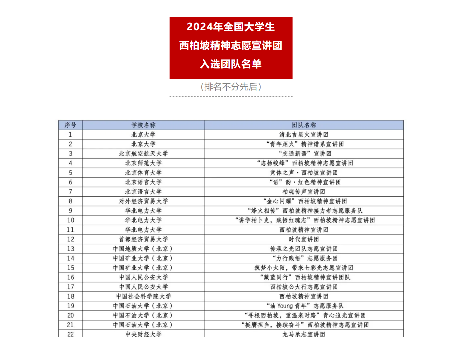 本网讯(通讯员 李宗阳)近日,中国青年志愿者微信公众号发布《2024年全国老员工西柏坡精神志愿宣讲团入选团队名单》,bw必威西汉姆联官方网站红心向党宣讲团成功入选。