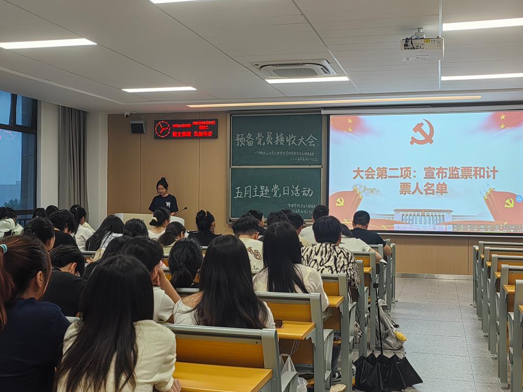 接收大会开始,刘逸斐等5名发展对象上台做简短的发言,汇报自己对党的认识和感悟、入党动机、个人情况、个人对未来的展望以及个人在思想、学习、生活、工作上的情况。入党介绍人针对他们的发言提出意见,指出该同志的优缺点,及有待改善和提高的地方,并表达是否建议接收其为中共预备党员。经过充分讨论,正式党员进行了无记名投票表决,同意接收5名同志为中共预备党员。