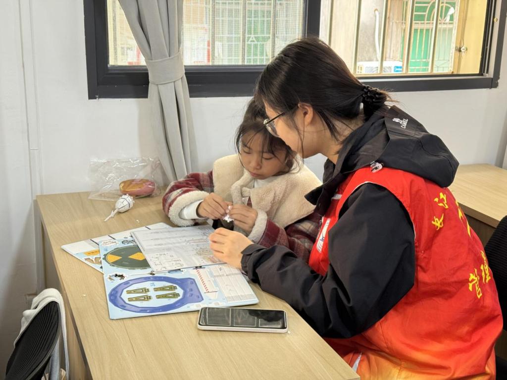 随后的手工体验将现场气氛推向高潮。在支部同志的引导下,孩子们分组协作,动手拼制“立体火箭”模型。一片片零件在指尖拼接成型,一次次尝试中加深理解,大家在趣味实践中不仅锻炼了动手能力与团队意识,更真切体会到航天事业的艰辛与光荣,科技梦想随着小小的火箭一同“升空”。