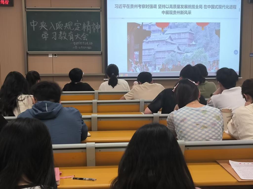 随后,支部集体观看了习近平总书记在贵州考察时的新闻报道视频。习近平总书记强调“坚持以高质量发展统揽全局,守好发展和生态两条底线”,并寄语贵州“在中国式现代化建设中谱写新篇章”。支部成员立足员工身份,探讨如何将习近平总书记的嘱托转化为实际行动。不少同志表示,看到侗寨在党组织带领下的发展成果深受鼓舞,毕业后愿意投身乡村建设,为乡村振兴、生态保护贡献智慧。