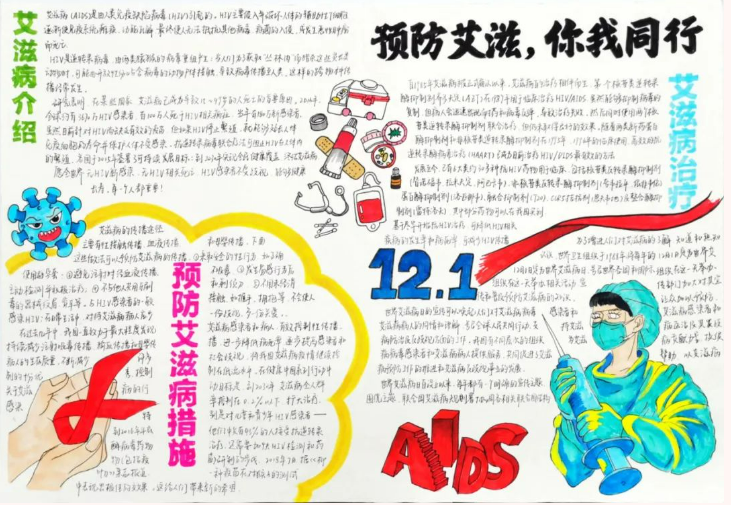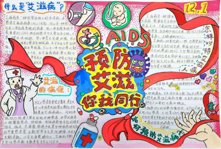 本次活动的展开,营造了一种珍视生命,积极向上的精神氛围,一种理解、关爱和不歧视艾滋病疾病感染者的社会风气,呼吁大家一起喝艾滋病患者共享健康校园环境。总之,“防艾重在未染,关爱始于温暖”,青春健康同伴社与大家携手共抗艾滋,共创健康未来。艾滋病手抄报活动的展开也提高了同学们对艾滋病的知识的了解,增强了同学们预防艾滋病的意识,是一场举办很成功的活动。