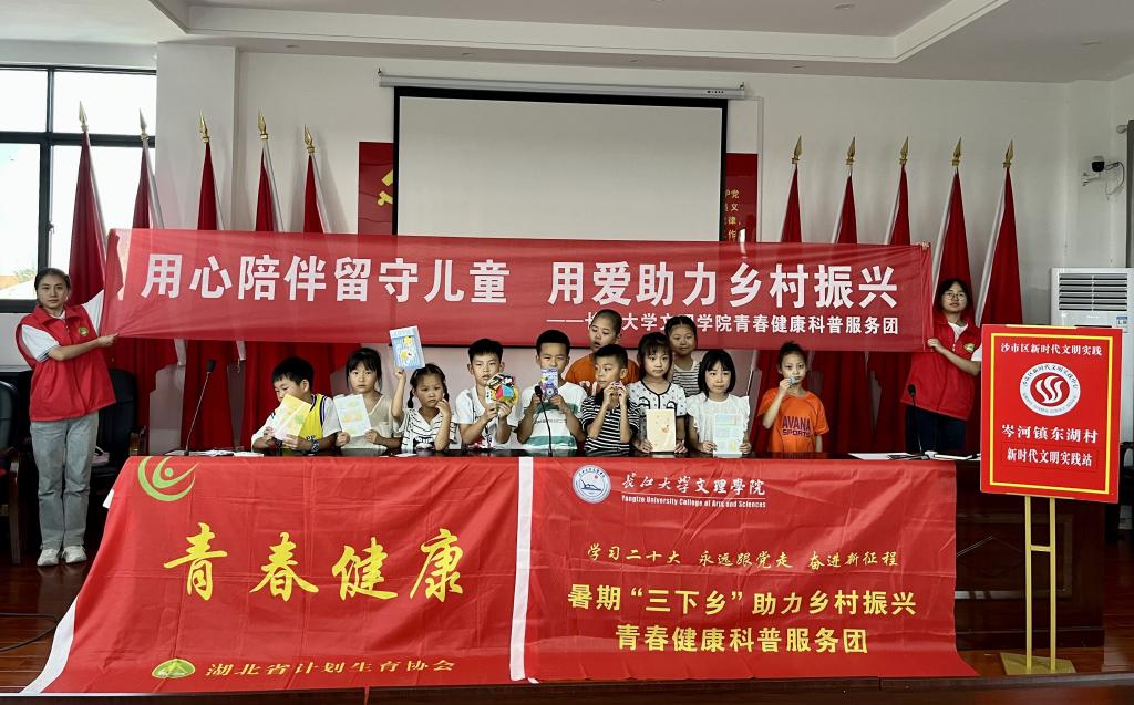本网讯(通讯员 马思蓉)2023年7月10日,bw必威西汉姆联官方网站青春健康科普服务团积极响应号召,前往荆州市沙市区岑河镇东湖村开展了“学习二十大 永远跟党走 奋进新征程”助力乡村振兴暑期“三下乡”送教志愿活动。