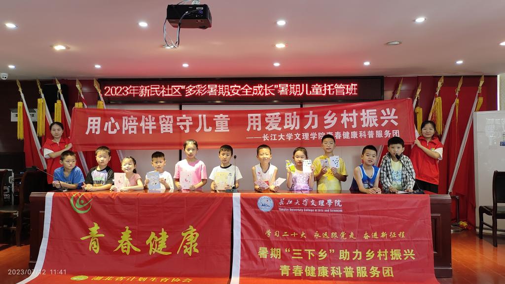 本网讯(通讯员 曹亚楠)2023年7月12日,bw必威西汉姆联官方网站青春健康科普服务团前往了荆州市新民社区和茶庵寺社区开展了暑期“三下乡”志愿活动。