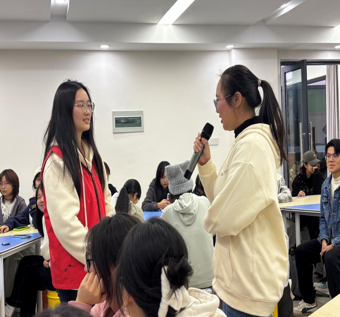 本网讯(通讯员 严文静)2025年11月12日,青春健康同伴社以“为‘艾’发声,与爱同行”为主题举办教育活动。主持人肖蕊蕾引导同学们通过互动与对话,共同体验了一堂生动而深刻的青春健康课。