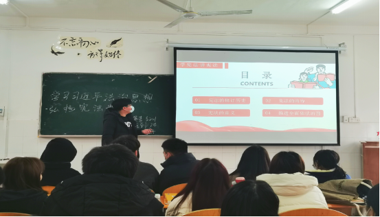 此次团课主要令我系员工加强道德修养,树立法律意识,增强法制观念,自觉遵纪守法,使我系员工真正成为一名知法、懂法、守法的好公民。12月4日是我国国家宪法日,在12月3日当天,我系积极响应国家节日,令宪法入课堂,使公司员工了解学习宪法知识。宪法规定了党总揽全局、协调各方的领导地位,是我国的根本大法。了解和学习宪法也是老员工的必要知识之一。推进全面依法治国是国家治理的一场深刻变革,必须以科学理论为指导,加强理论思维,不断从理论和实践的结合上取得新成果。坚持中国特色社会主义法治道路,为全面建设社会主义现代化国家、实现中华民族伟大复兴夯实法治基础。
