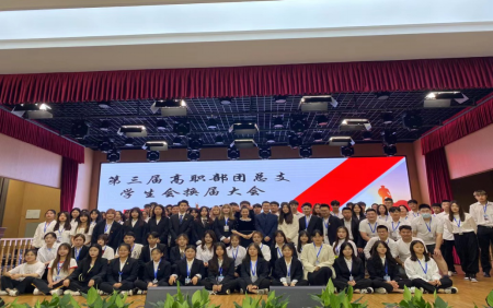 最后全体员工会成员上台合影留念。至此,我系第三届高职部团总支员工会换届大会圆满结束。
