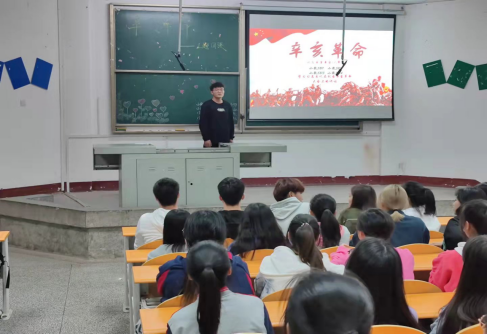 晚上七点主题团会准时开始,主持人介绍了团课主题和背景。为深入学习领会习近平总书记重要讲话精神,充分认识辛亥革命在开创近代民族民主革命、促进中华民族思想解放、推动中国社会变革、为实现中华民族伟大复兴探索道路等方面的历史功绩和重大意义,铭记辛亥革命的历史功勋,弘扬辛亥革命先驱的崇高精神,进一步增强为实现中华民族伟大复兴而奋斗的政治责任感和历史使命感。同学们在团课上深入学习习近平总书记重要讲话精神的实质和要义,并围绕如何践行辛亥革命精神进行了讨论和交流并发表了自己的观念和想法。