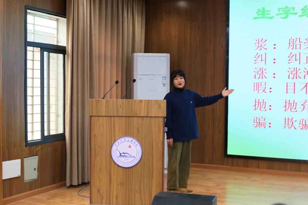 本次比赛来自大一、大二两个年级22名员工参赛,入围决赛的共有6名同学,比赛分两个环节,模拟授课十分钟,答辩三分钟。从教师口语,教态,授课内容设计,重难点把握,教学方法,多媒体使用等多方面对选手进行综合考核。在授课环节,各参赛选手准备充分,教学过程设计合理,语言表达准确生动,教学方法独特新颖。在答辩环节,各选手们更是凭着三寸不烂之舌,机智应变,完美作答,对答辩问题处理得可谓天衣无缝,滴水不漏。选手们自然流畅,富有创意地语言;端庄大方,挥洒自如的仪态彰显出了同学们扎实的教学基本功以及洋溢着朝气与热情的教学风采。比赛过程中不时响起热烈掌声,领导,老师们看到实习生们突飞猛进的进步,精彩纷呈的展示,欣慰不已。