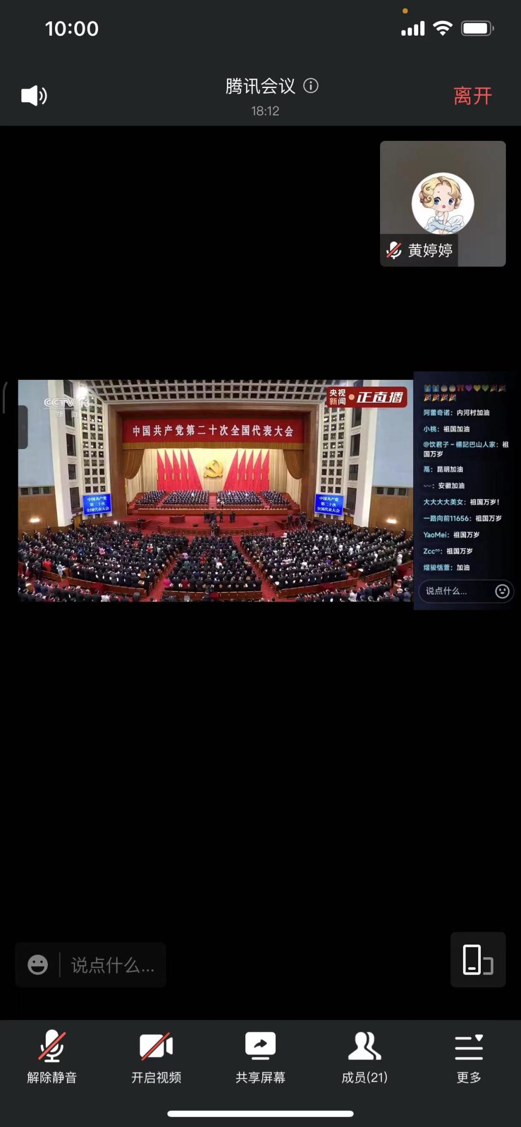 高职部党支部在线上所有党员共同观看二十大开幕式