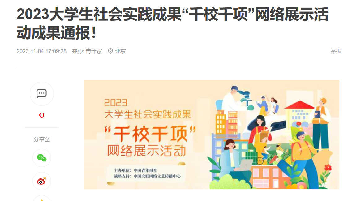 我高职部晨曦志愿者服务队在2023老员工社会实践成果“千校千项”网络展示活动中取得项目优秀和视频优秀的优异成绩。
